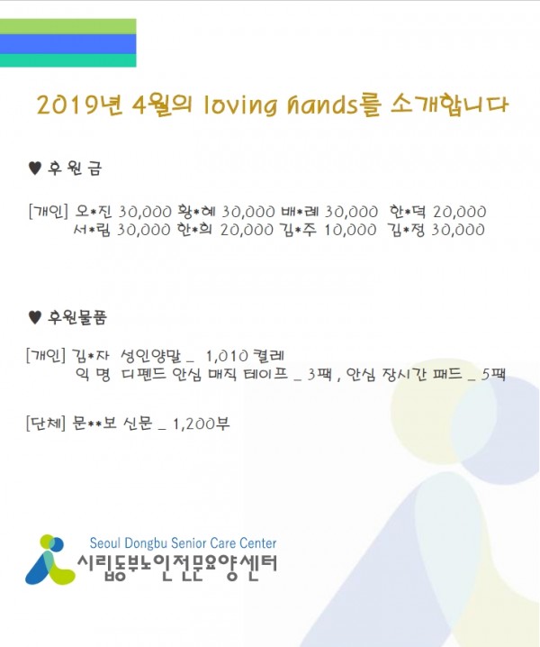 2019년 4월 loving hands!!를 소개합니다. 페이지 정보 작성자 최고관리자 작성일2019-05-07 17:53 조회14,512회 댓글0건 관련링크 이전글 다음글 목록 본문 따스한 봄이 찾아오는 4월에도 많은 관심과 사랑의 손길을 베풀어 주셔서 감사합니다.5월에도 많은 관심과 사랑을 부탁 드립니다. 댓글목록 등록된 댓글이 없습니다. 이전글 다음글 목록