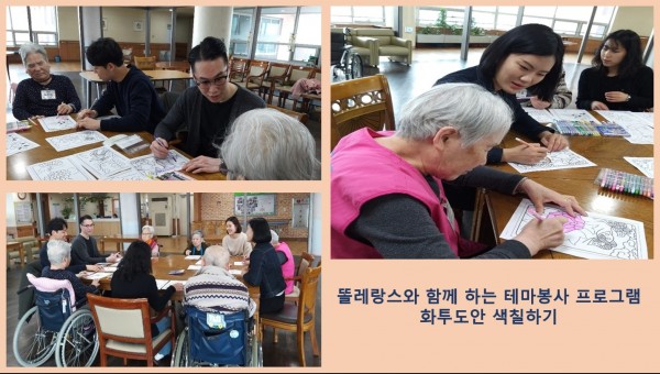 [복지]똘레랑스와 함께하는 재미있는 테마 봉사 페이지 정보 작성자 송유라 작성일2019-03-27 18:10 조회3,337회 댓글0건 관련링크 이전글 다음글 목록 본문 안녕하세요^^3월 23일에 진행된 똘레랑스(자원봉사자 단체) 멤버분들이 동부를 방문해주셨습니다^ㅡ^동부어르신들과 재미나는 화투 도안 색칠하기를 진행하였습니다!!다양한 테마봉사활동을 통하여 입소어르신들의 재미,활력을 느끼시길 바랍니다^^ 감사합니다! 댓글목록 등록된 댓글이 없습니다. 이전글 다음글 목록