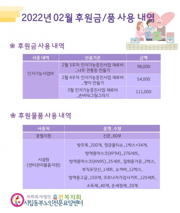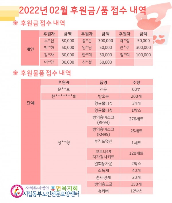 2022년 2월 후원금/품 접수내역, 사용내역